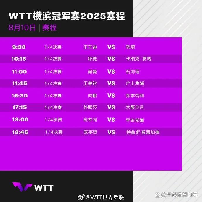 男单1/4决赛,向鹏将挑战宇宙排行第4的日本选手张本智和(16:30),后者在1/8决赛,以3-0淘汰了卡尔伯格。另一场1/4决赛,王楚钦迎战日本选手户上隼辅,比赛时刻是11:45,期待向鹏与王楚钦的好音问。而其他两场1/4决赛对阵为,邱党VS卡纳克-贾哈、安宰贤VS莫雷加德。
