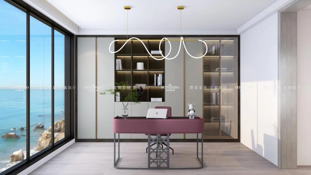设计师巧妙以玻璃门呼应阳台玻璃门,
